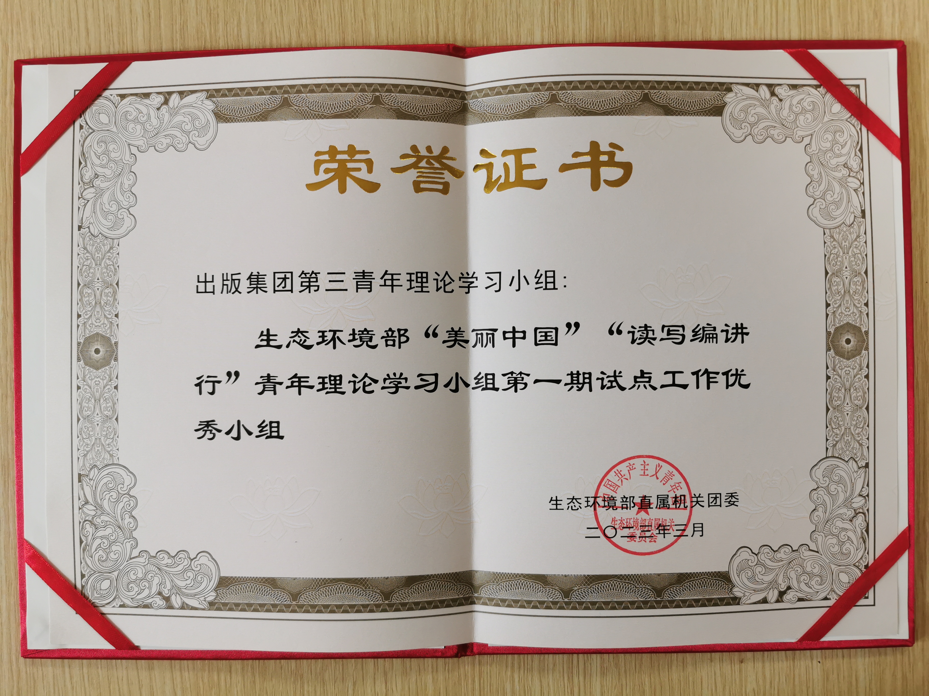 2022年以來,生態(tài)環(huán)境部機(jī)關(guān)黨委系統(tǒng)推進(jìn)青年理論學(xué)習(xí)提升工程,出版集團(tuán)第三青年理論學(xué)習(xí)小組積極申報并全程參與“美麗中國”“讀寫編講行”青年理論學(xué)習(xí)小組第一期試點,取得創(chuàng)新性突破,于近日被生態(tài)環(huán)境部直屬機(jī)關(guān)團(tuán)委評定為第一期試點工作“優(yōu)秀小組”。